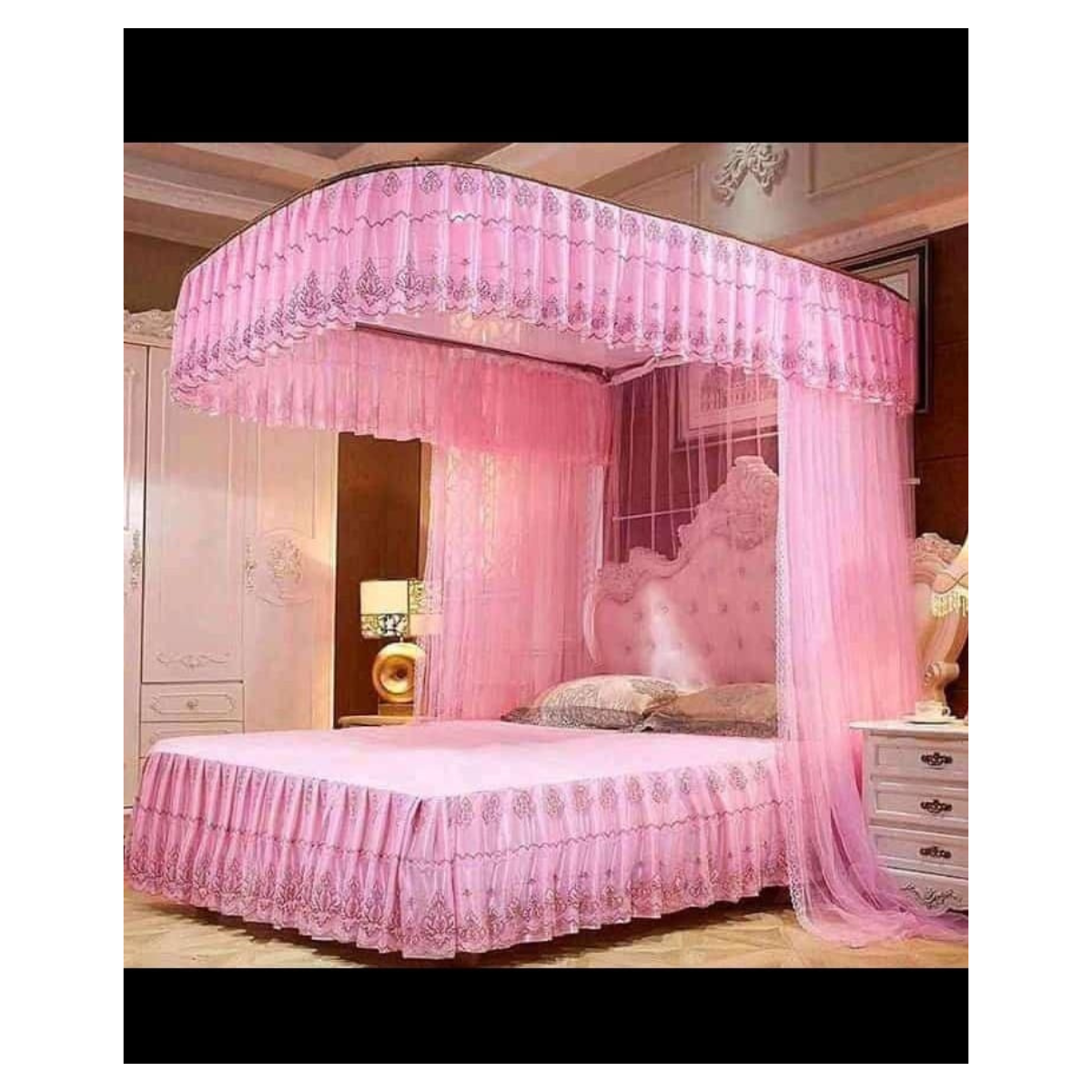 4 Stand Rail Mosquito Net Pink
